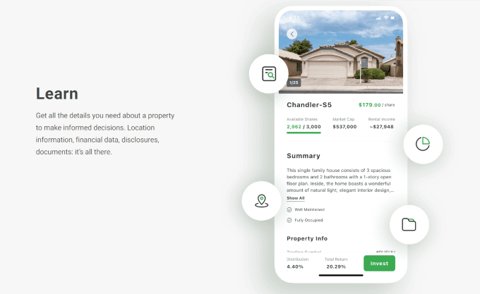 The Arrived investment platform allows you to invest in single-family homes, vacation rentals, and long-term rentals. You can invest between $100 and $20,000 per individual property. Opening an account with Arrived is a quick process that doesn't require you to be an accredited investor.