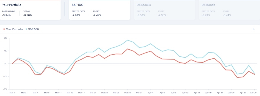 The investment section helps you view your entire portfolio, including 401(k) plans and taxable brokerage accounts in one place. You can compare your portfolio to your chosen benchmarks and view individual values to see where your portfolio performs the best.